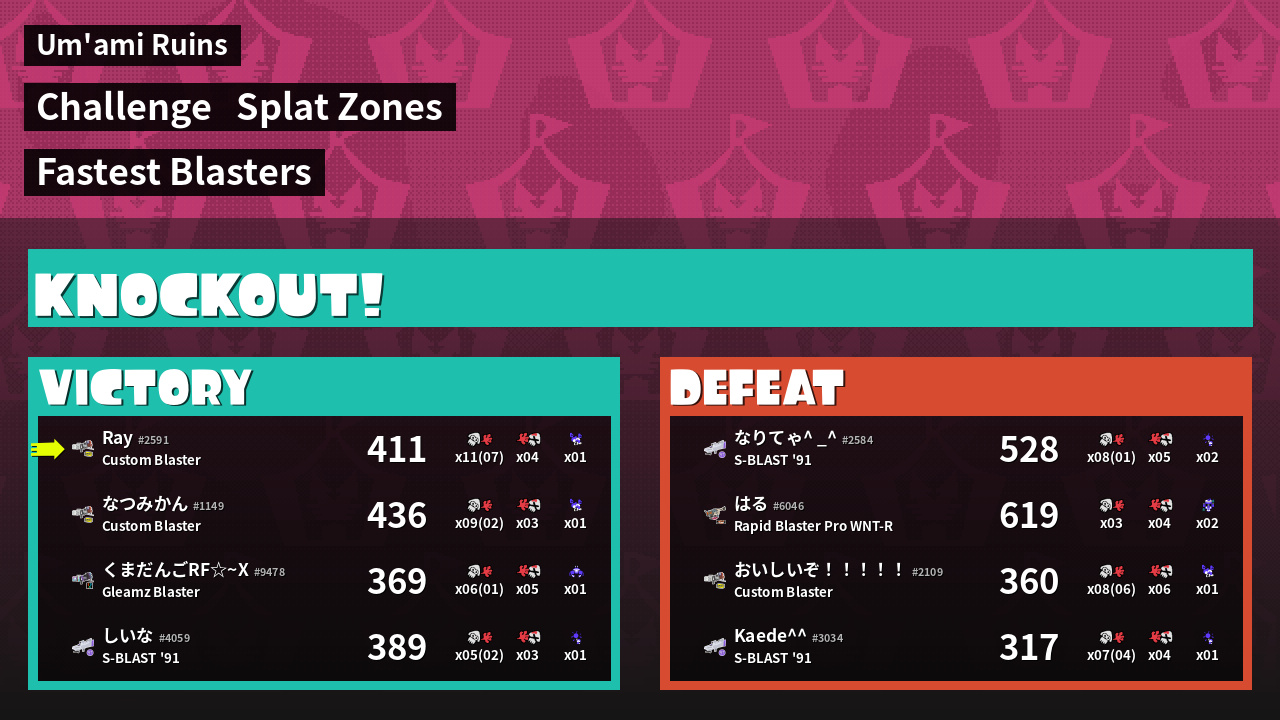 | Medals | #1 Overall Splatter #1 Splat Zone Guard #1 Splat Assister | ||