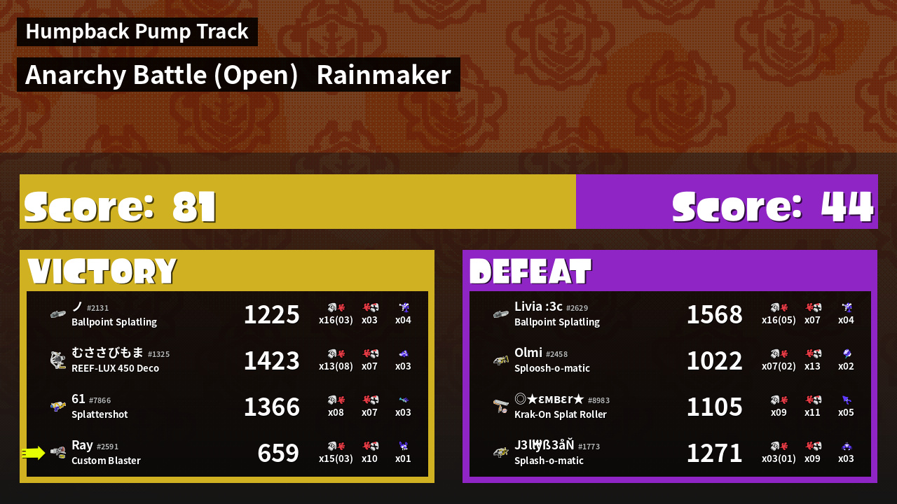 | Mode | Rainmaker - Anarchy Battle (Open) | ||