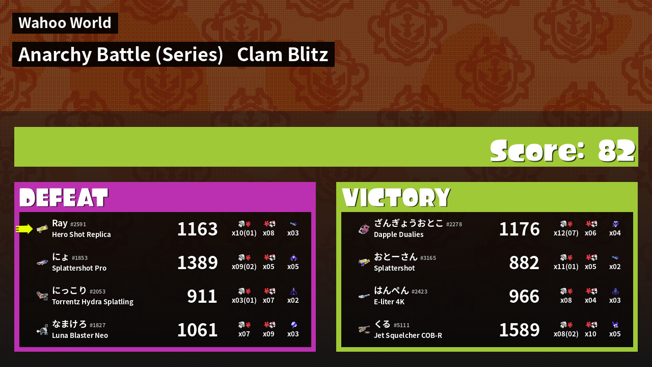 | Mode | Clam Blitz - Anarchy Battle (Series) | ||
