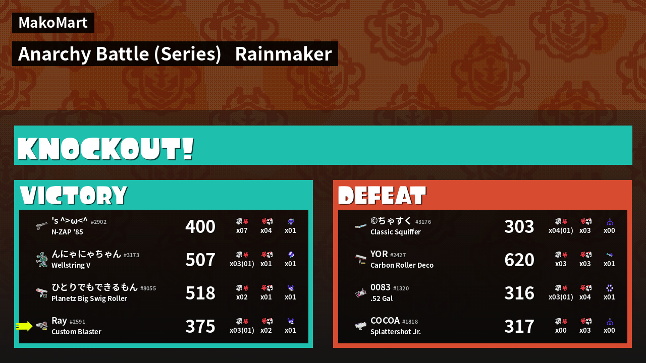 | Mode | Rainmaker - Anarchy Battle (Series) | ||
