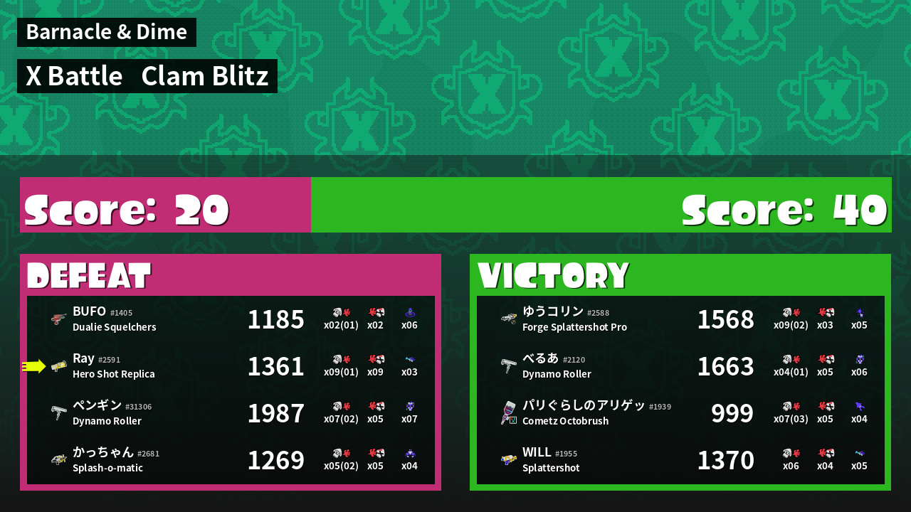 | Mode | Clam Blitz - X Battle | ||
