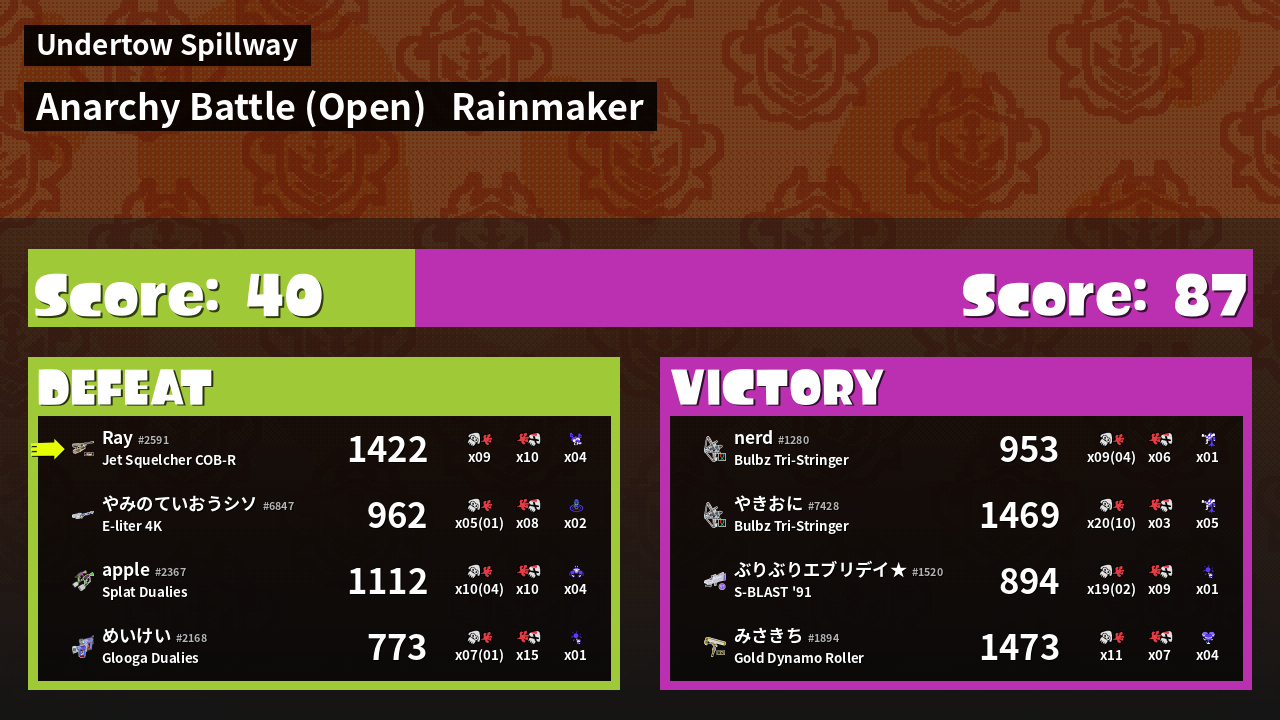 | Mode | Rainmaker - Anarchy Battle (Open) | ||