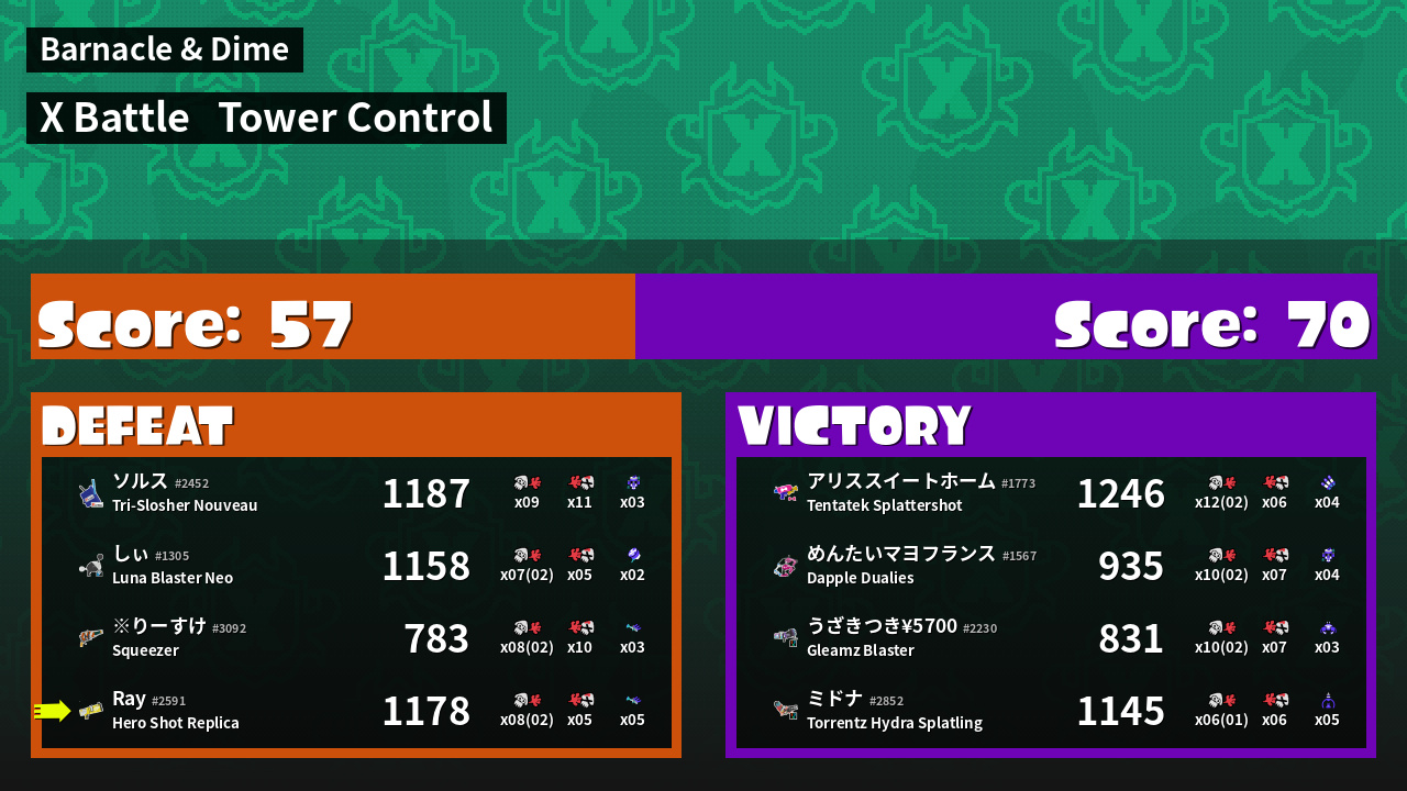 | Medals | #1 Splat Assister #1 Damage Taker #1 Ink Consumer | ||