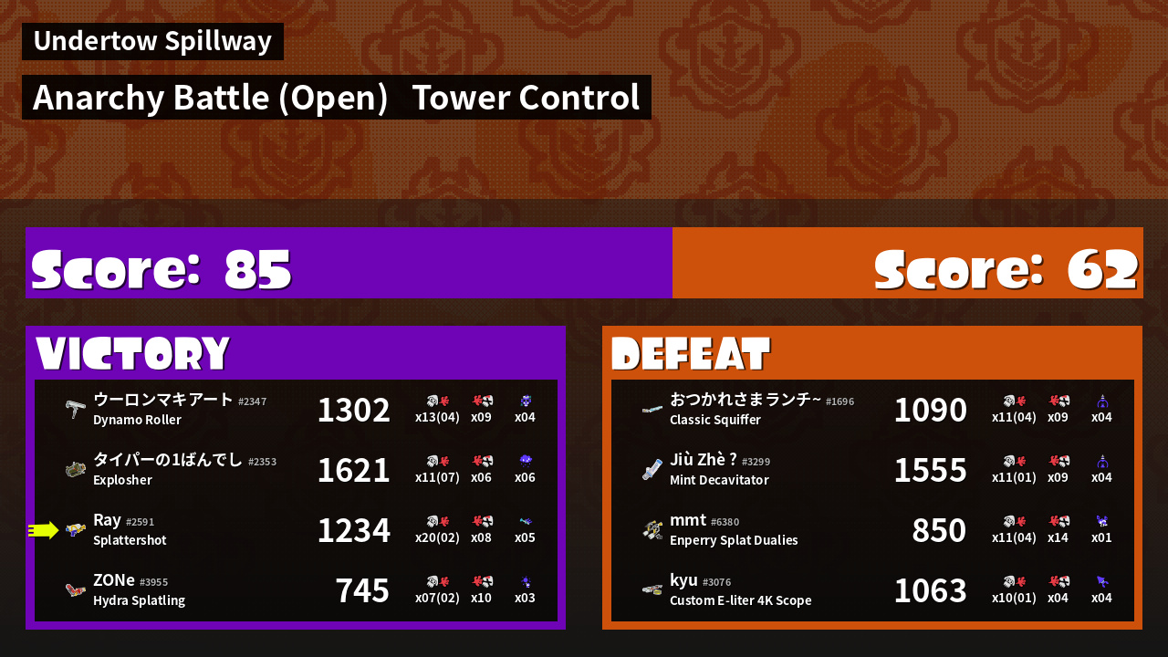 | Mode | Tower Control - Anarchy Battle (Open) | ||