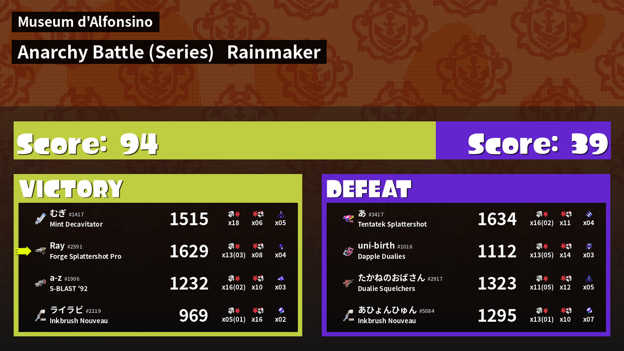 | Mode | Rainmaker - Anarchy Battle (Series) | ||