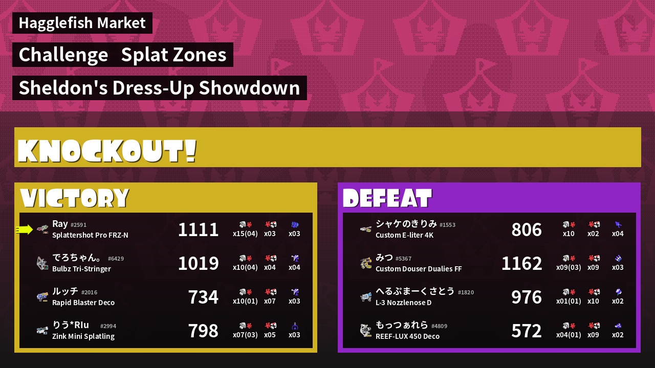 | Medals | #1 Overall Splatter #1 Splat Zone Guard #1 Turf Inker | ||