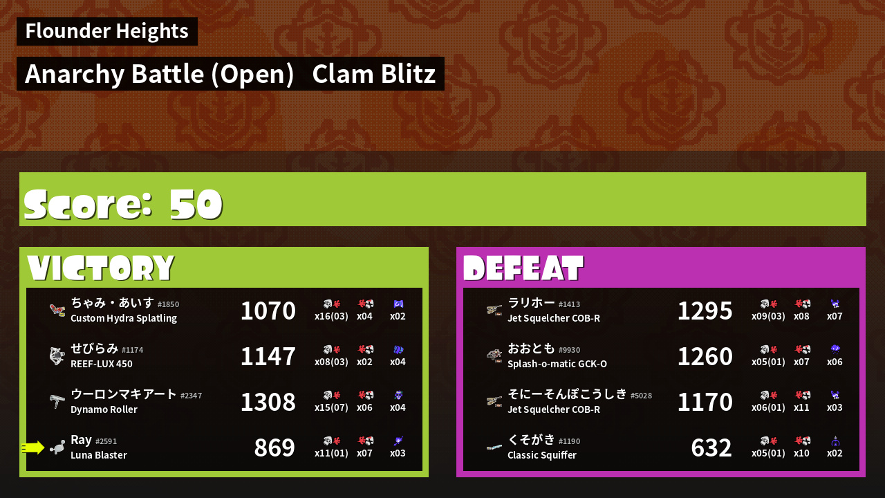 | Mode | Clam Blitz - Anarchy Battle (Open) | ||