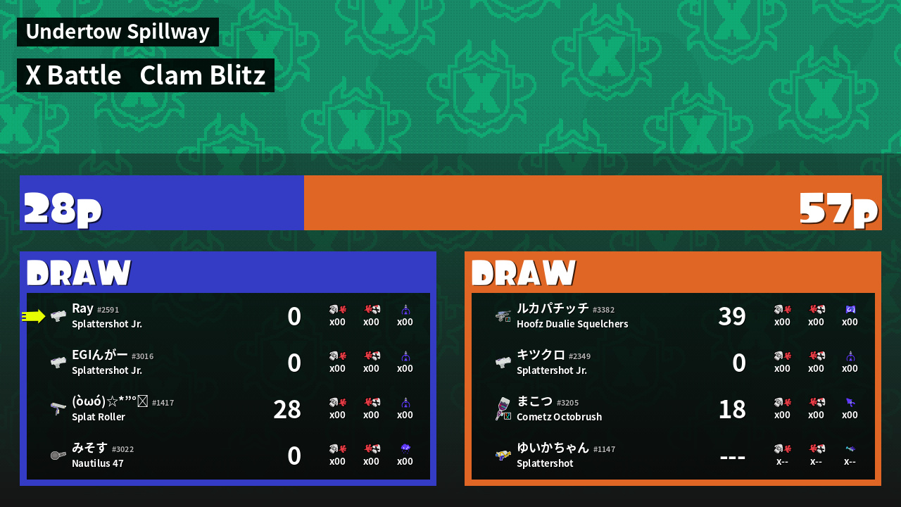 | Mode | Clam Blitz - X Battle | ||