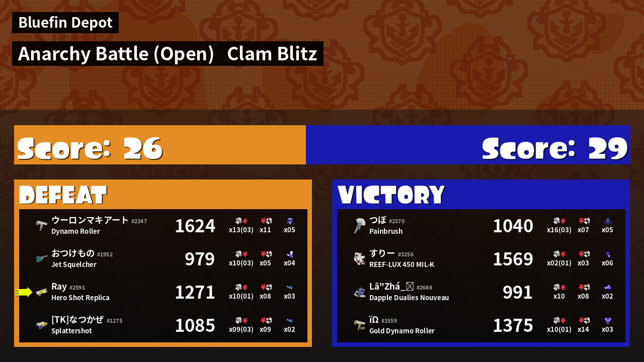| Mode | Clam Blitz - Anarchy Battle (Open) | ||
