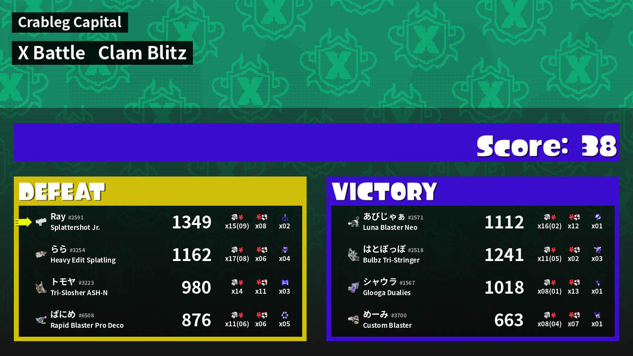 | Mode | Clam Blitz - X Battle | ||