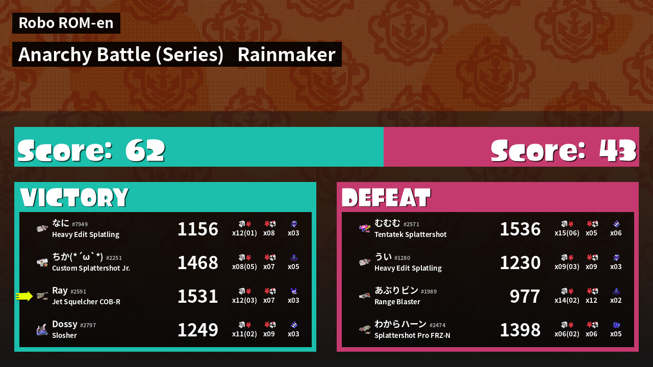 | Mode | Rainmaker - Anarchy Battle (Series) | ||