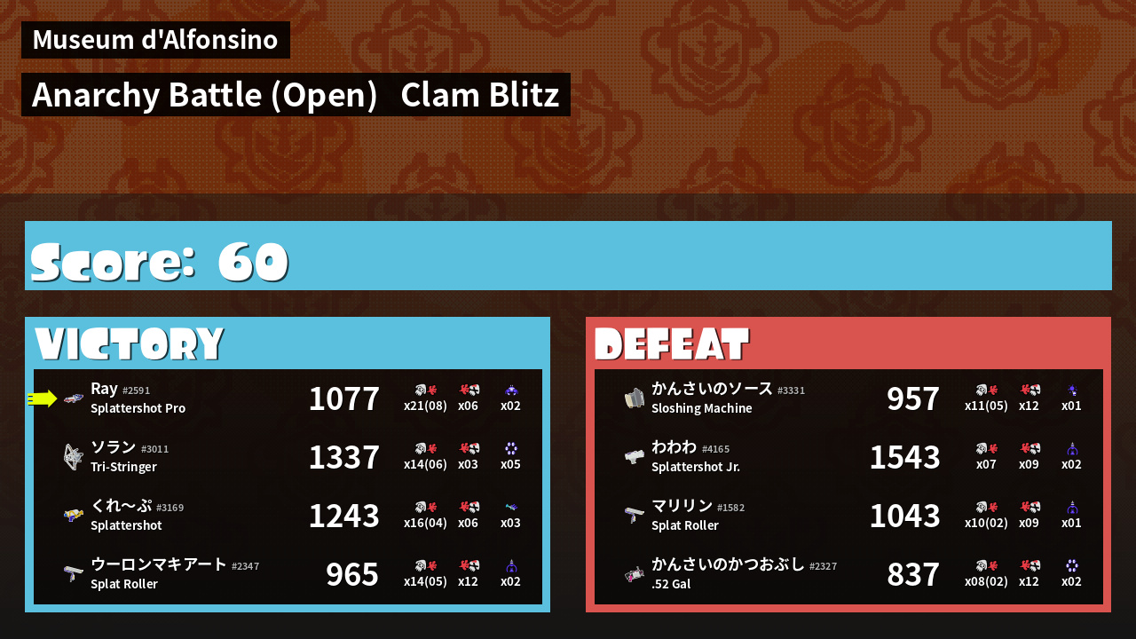 Kills / Deaths | 13 + 8 / 6 > Kill Ratio: 2.17 | ||