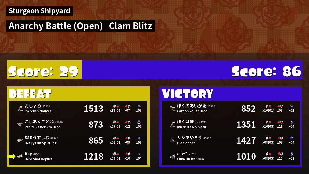 | Mode | Clam Blitz - Anarchy Battle (Open) | ||