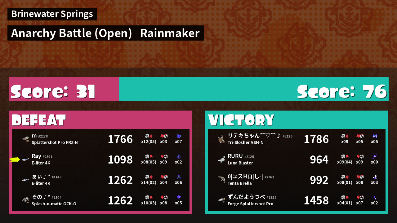 | Mode | Rainmaker - Anarchy Battle (Open) | ||