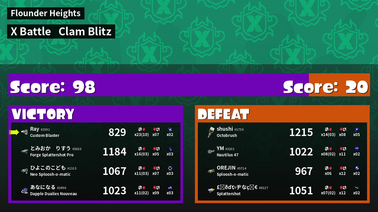 Kills / Deaths | 13 + 10 / 7 > Kill Ratio: 1.86 | ||