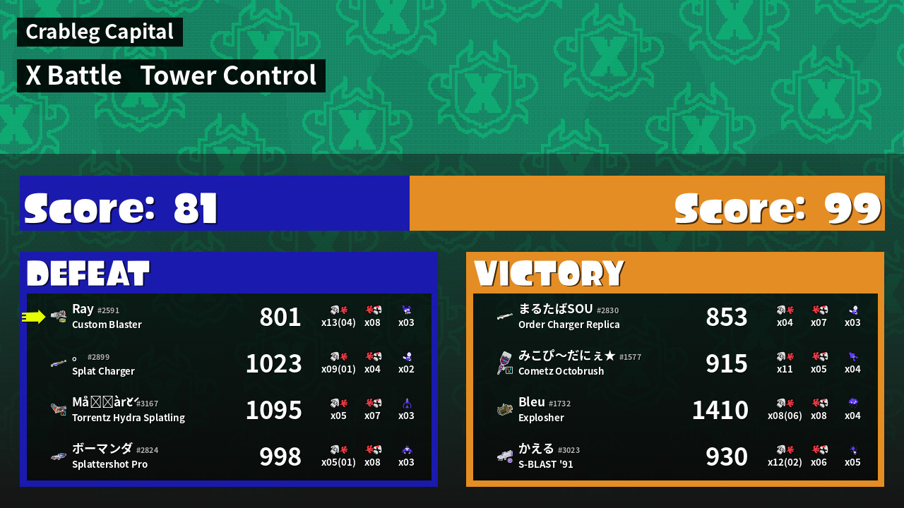 | Mode | Tower Control - X Battle | ||