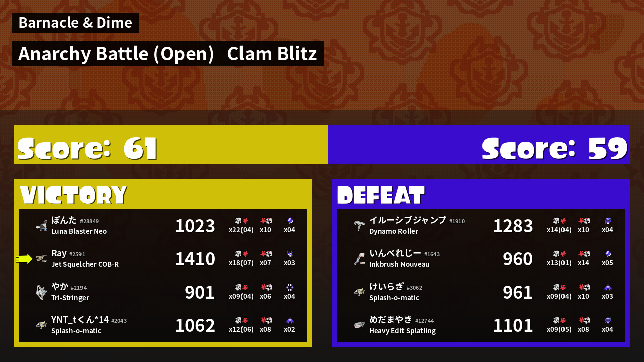 | Mode | Clam Blitz - Anarchy Battle (Open) | ||