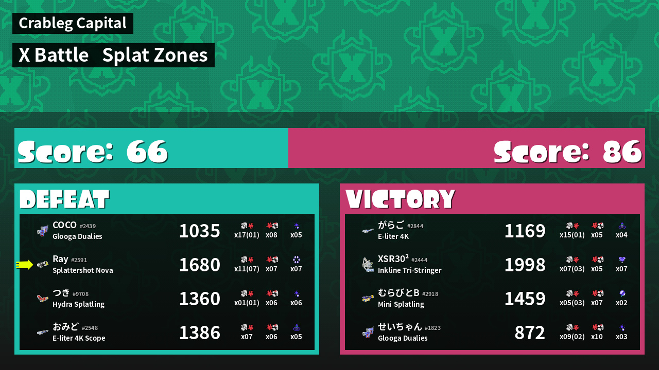 | Medals | #1 Splat Zone Inker #1 Turf Inker #1 Splat Assister |