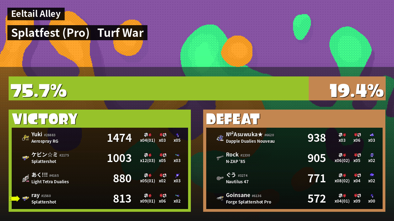Kills / Deaths | 8 + 1 / 6 > Kill Ratio: 1.33 | ||