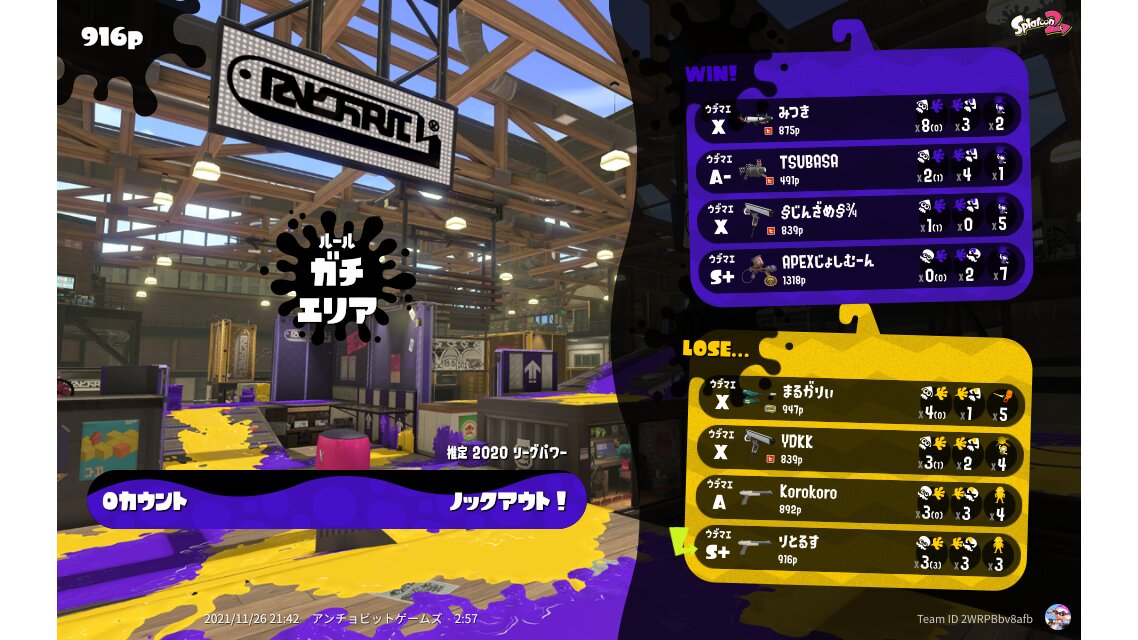 | Mode | Splat Zones - League Battle (Quad) | |||||||||||||||||||||||||||||||||||||||||||