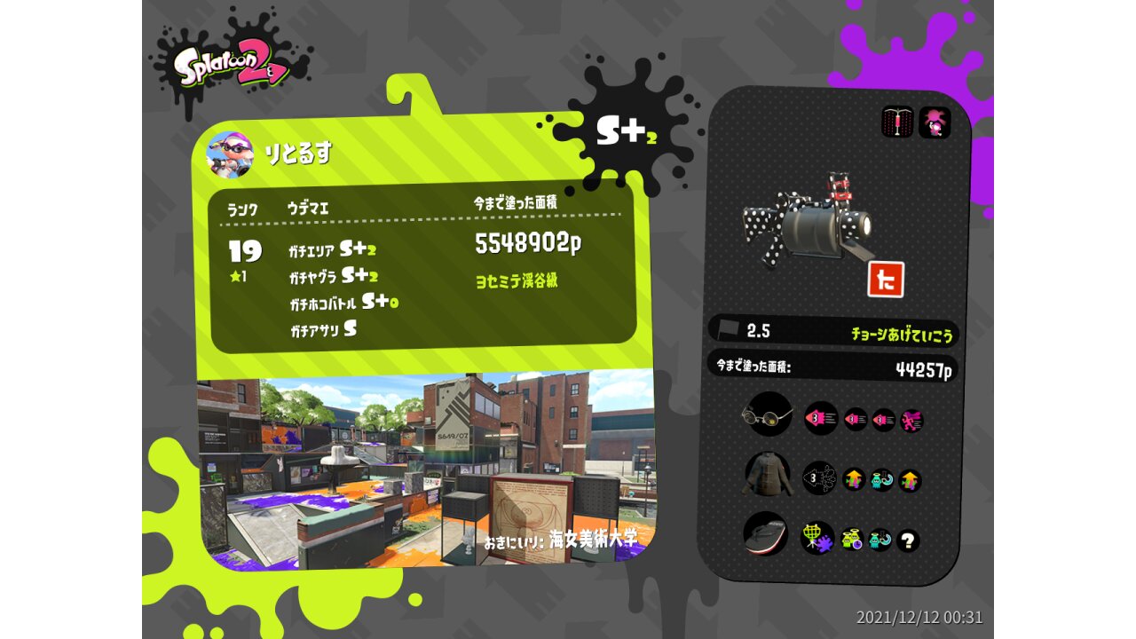 | Name | Weapon | Level | Rank | Inked | k+a/sp | k/d |