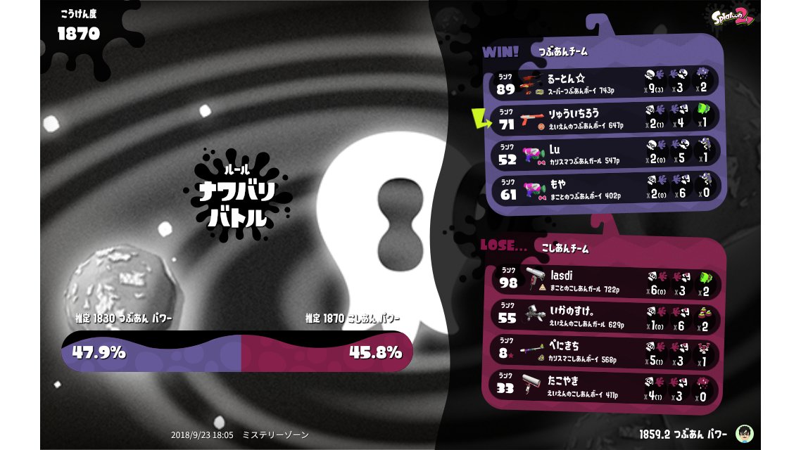 | Their team's splatfest power | 1,870 | |||||||||||||||||||||||||||||||