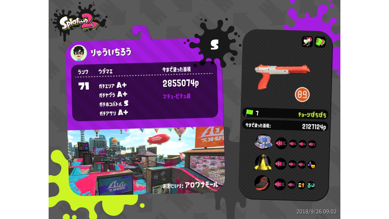 | Name | Weapon | Level | Rank | Inked | k+a/sp | k/d |