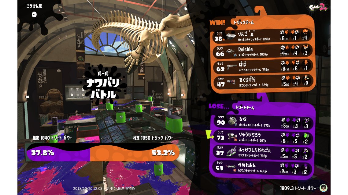 | Splatfest Title | トリート Defender 468 → トリート Defender 488 | |||||||||||||||||||||||||||||||