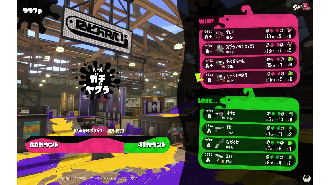 | SplatNet Battle # | 3,774 | |||||||||||||||||||||||||||||||