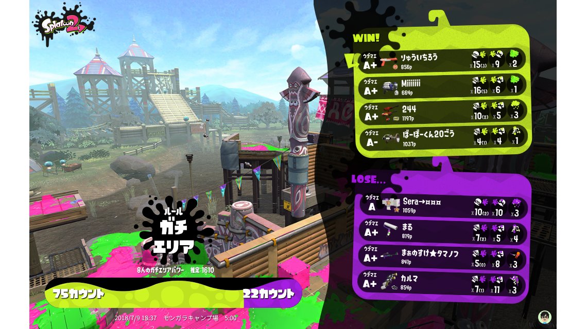 | Mode | Splat Zones - Ranked Battle | |||||||||||||||||||||||||||||||