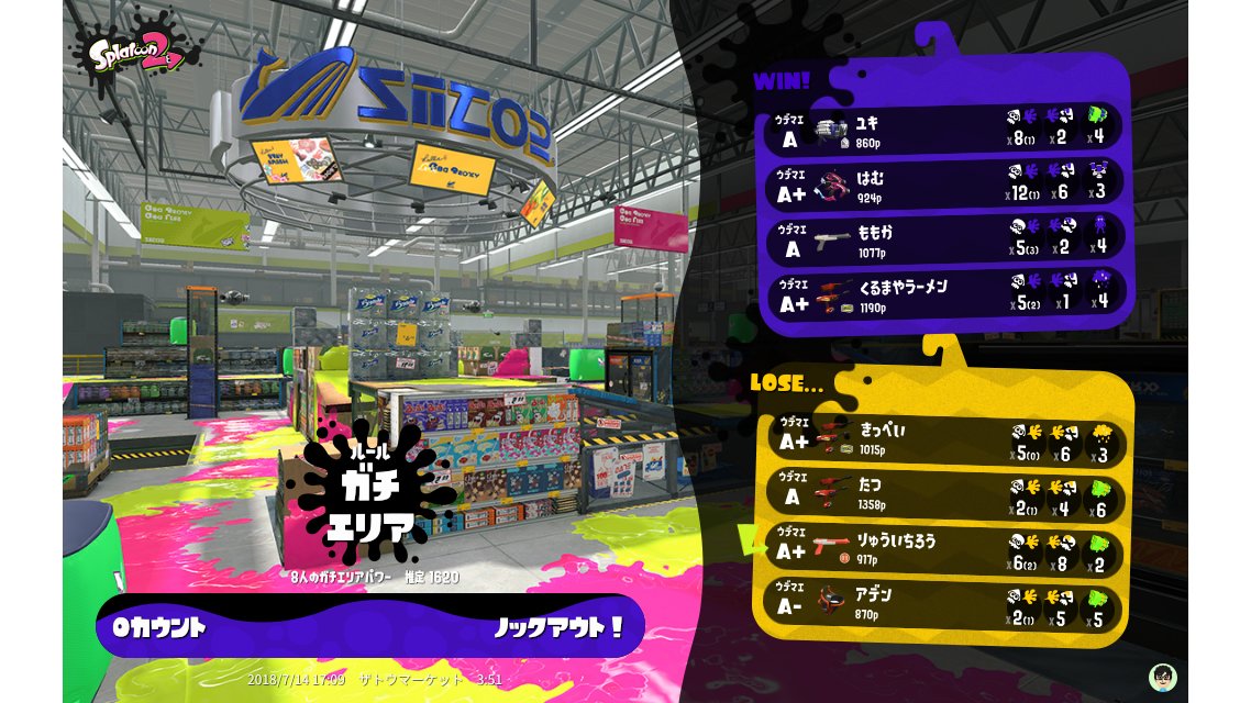 | Mode | Splat Zones - Ranked Battle | |||||||||||||||||||||||||||||||