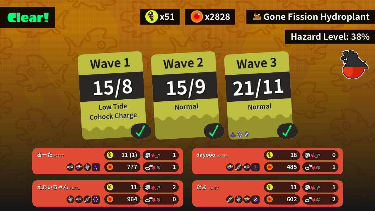 | Weapons | Blaster Splattershot Tri-Stringer | Splattershot Splatana Wiper Blaster | Tri-Stringer Blaster Splatana Wiper | Splatana Wiper Tri-Stringer Splattershot |