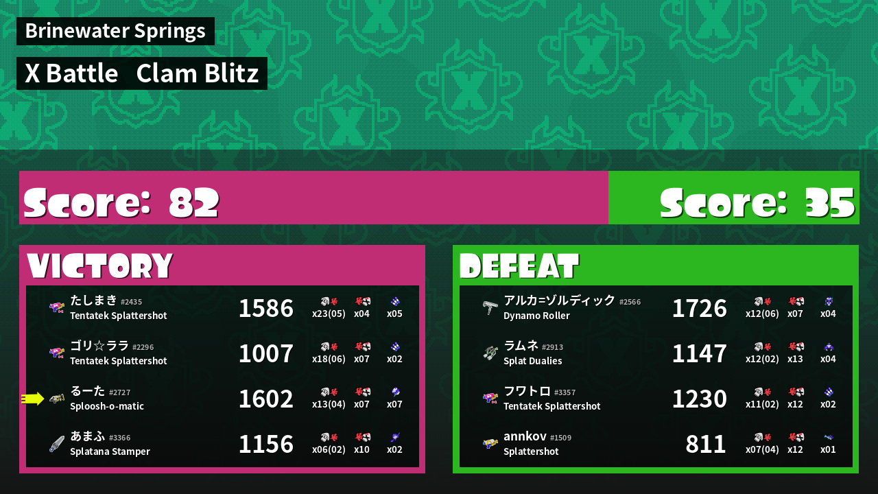 | Mode | Clam Blitz - X Battle | ||