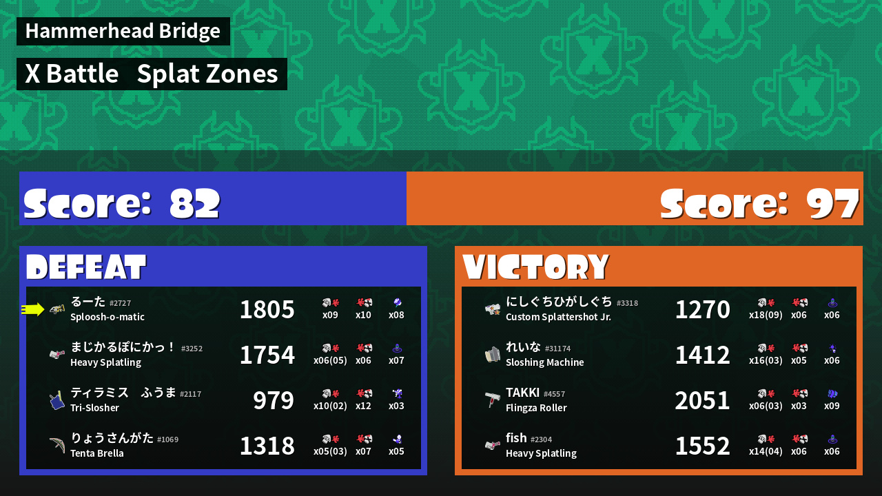 | Weapon | Sploosh-o-matic ( Curling Bomb / Ultra Stamp) | ||