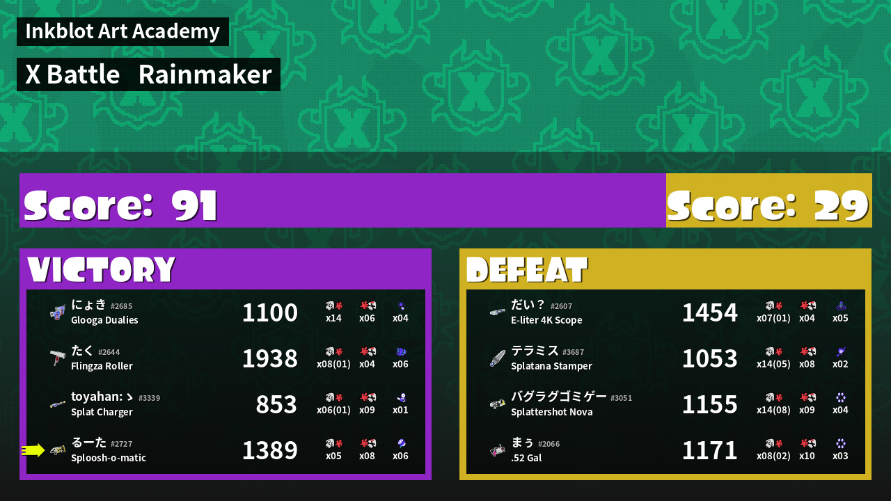 | Weapon | Sploosh-o-matic ( Curling Bomb / Ultra Stamp) | ||