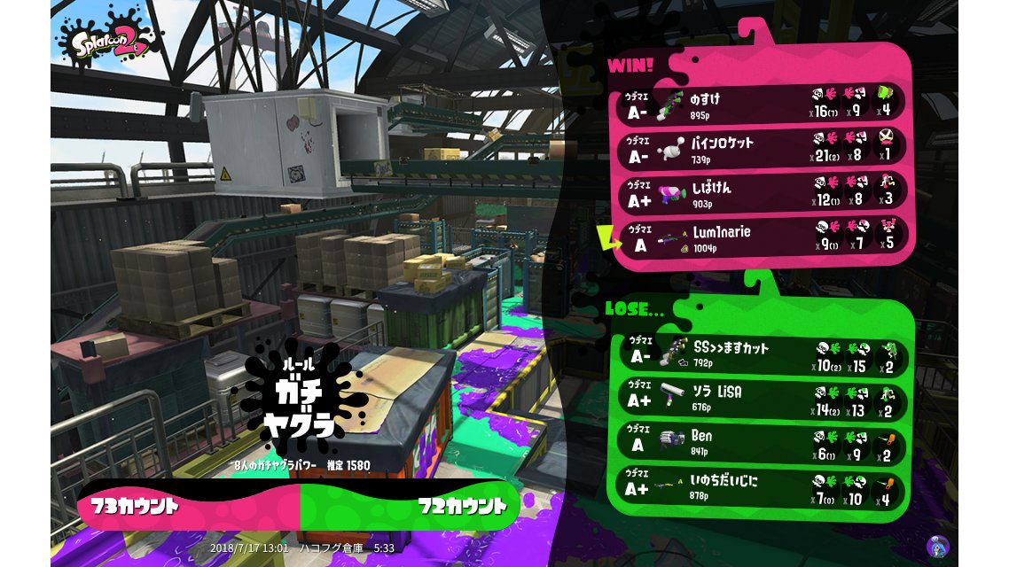 | Name | Weapon | Level | Rank | Inked | k+a/sp | k/d |