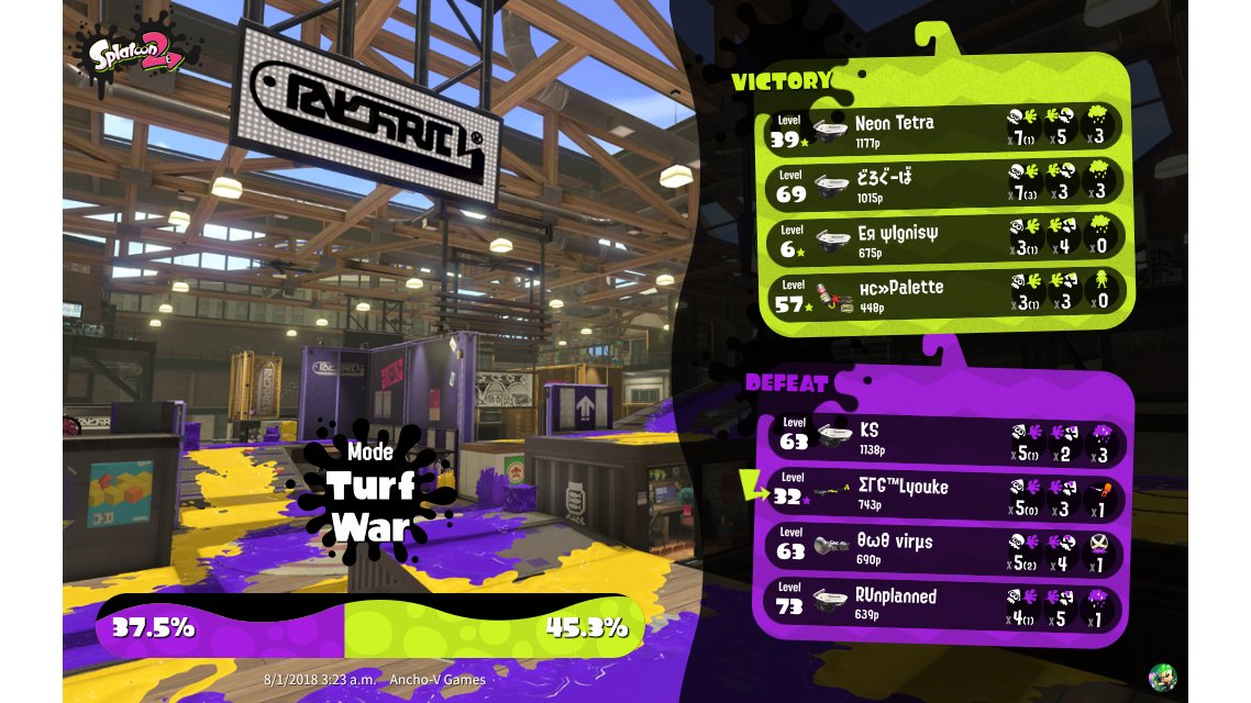 | Mode | Turf War - Regular Battle | ||||||||||||||||||||||||||||||||||