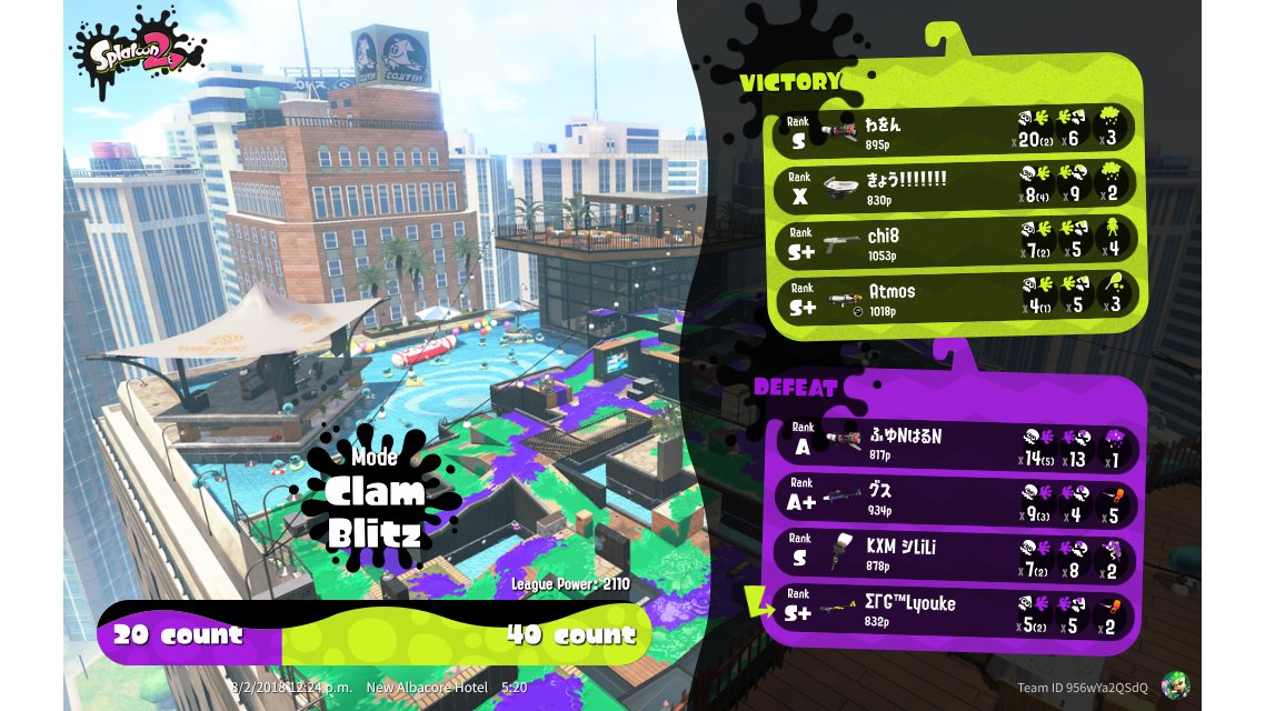 | Mode | Clam Blitz - League Battle (Twin) | ||||||||||||||||||||||||||||||||||
