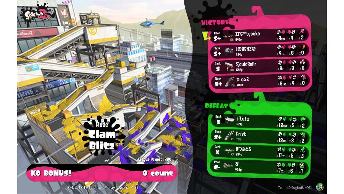 | Mode | Clam Blitz - League Battle (Quad) | ||||||||||||||||||||||||||||