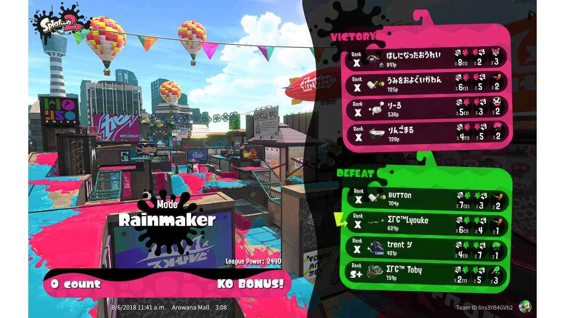 | SplatNet Battle # | 8,622 | |||||||||||||||||||||||||||||||||||||