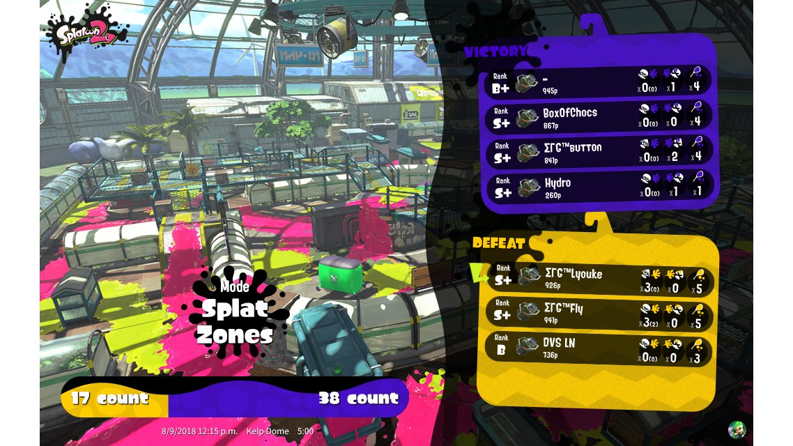 | Mode | Splat Zones - Private Battle | |||||||||||||||||||||||||