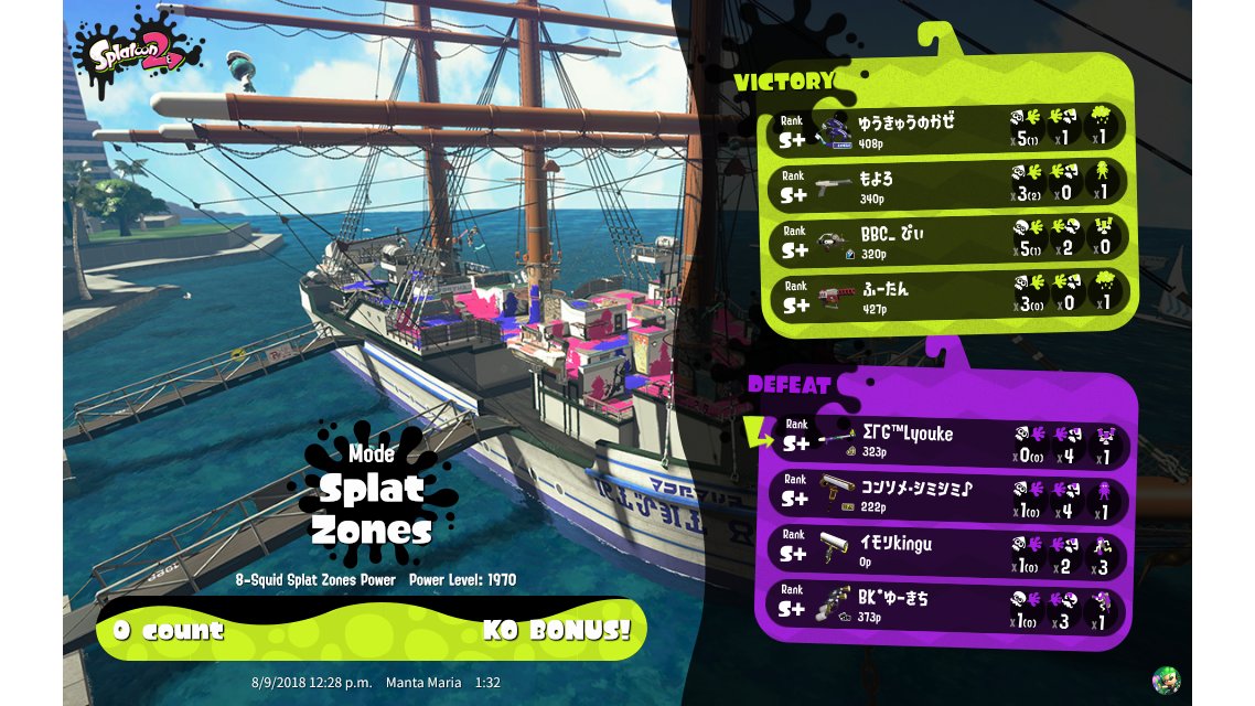 | Mode | Splat Zones - Ranked Battle | |||||||||||||||||||||||||||||||
