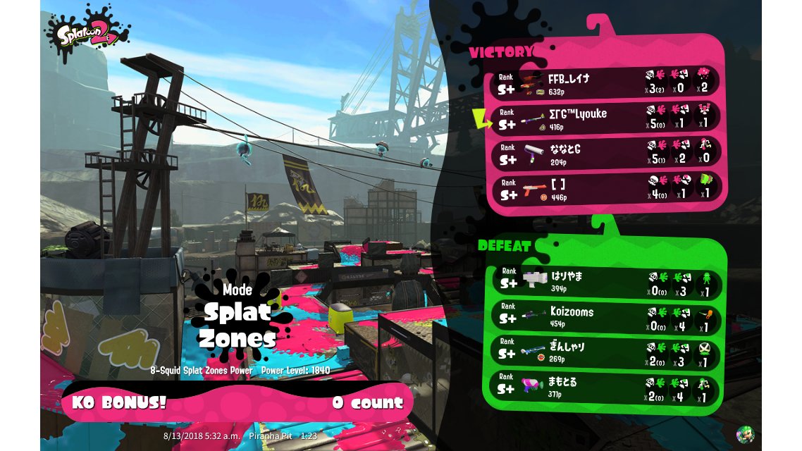 | Mode | Splat Zones - Ranked Battle | ||||||||||||||||||||||||||||||||||||||||
