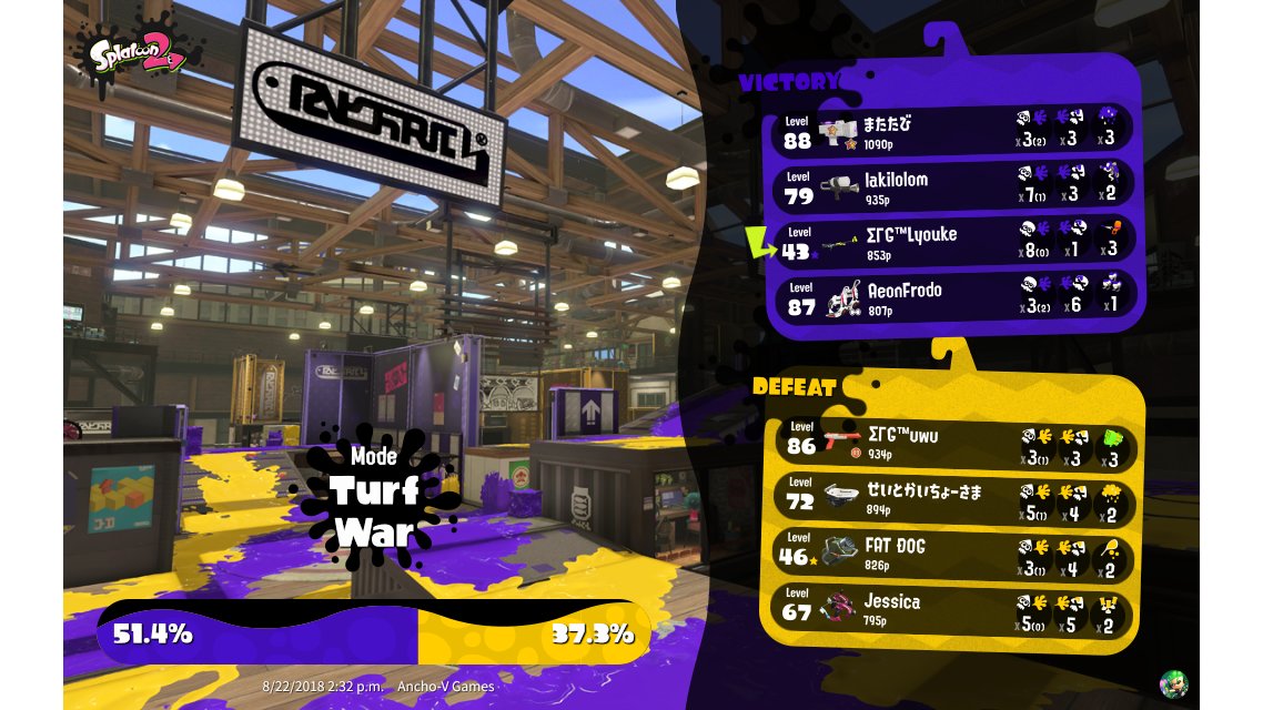 | Mode | Turf War - Regular Battle | ||||||||||||||||||||||||||||||||||