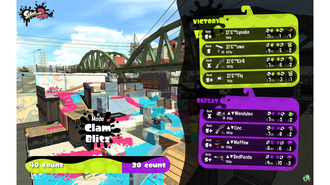 | Mode | Clam Blitz - Private Battle | ||||||||||||||||||||||||||||||||||