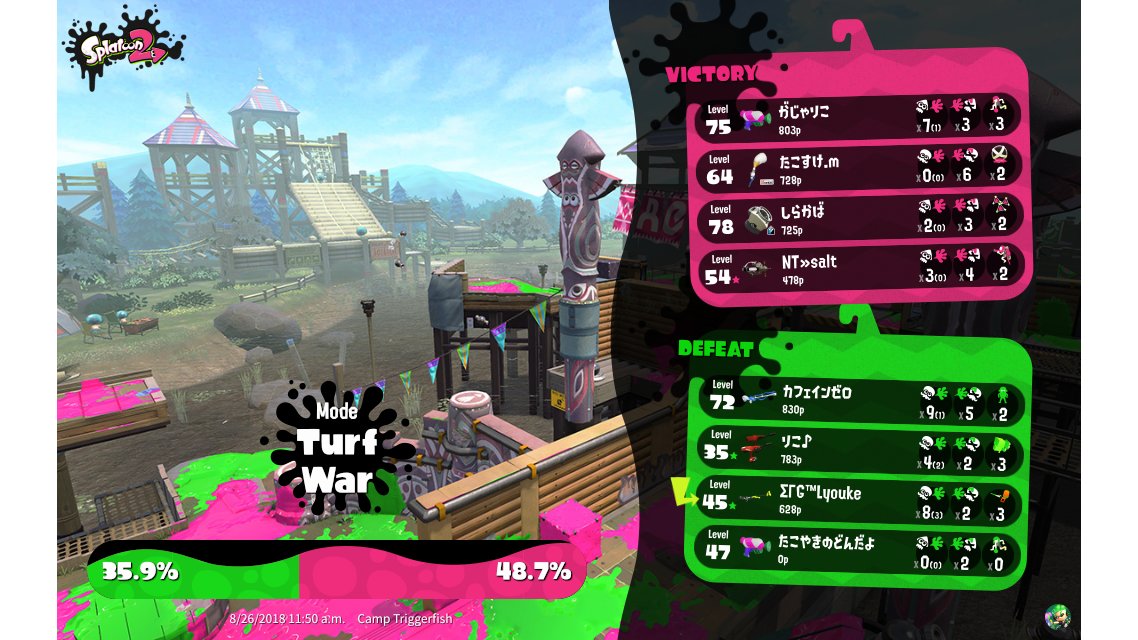 | Mode | Turf War - Regular Battle | ||||||||||||||||||||||||||||