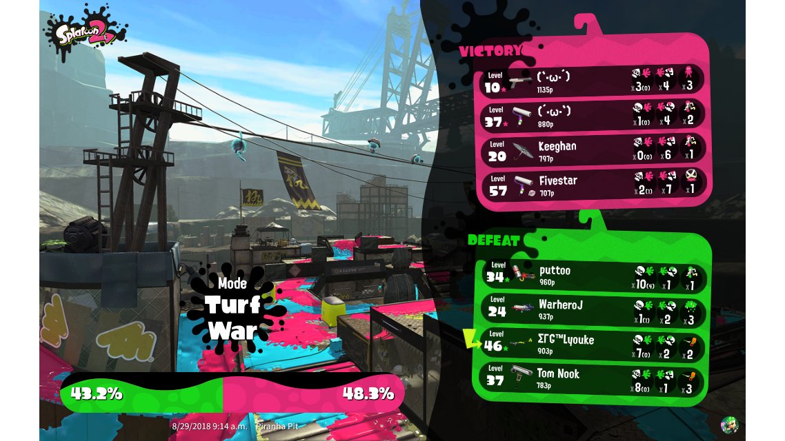 | Mode | Turf War - Regular Battle | |||||||||||||||||||||||||||||||||||||