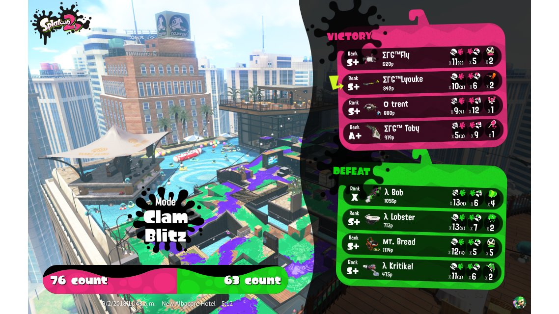 | Mode | Clam Blitz - Private Battle | ||||||||||||||||||||||||||||||||||