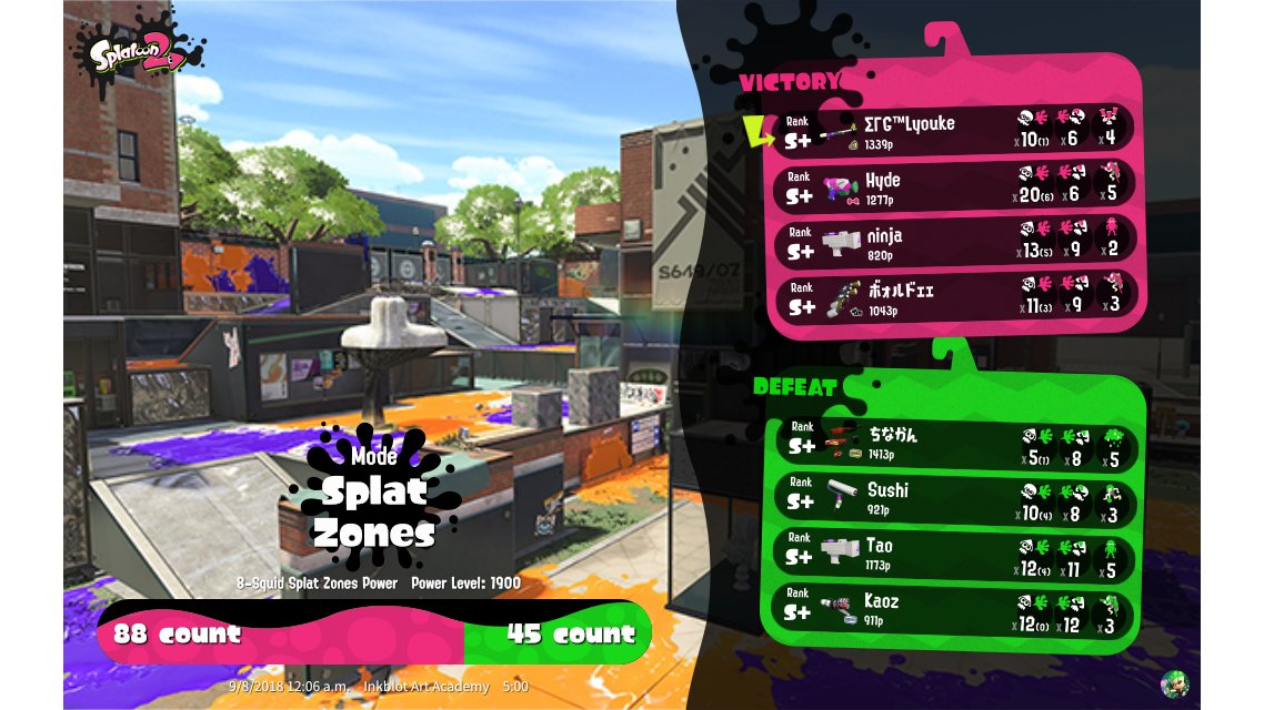| Mode | Splat Zones - Ranked Battle | ||||||||||||||||||||||||||||||||||||||||
