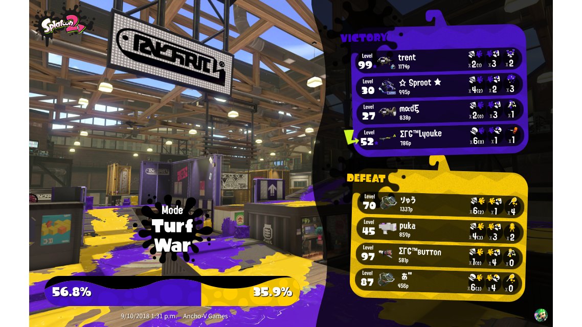 | Mode | Turf War - Regular Battle | |||||||||||||||||||||||||||||||
